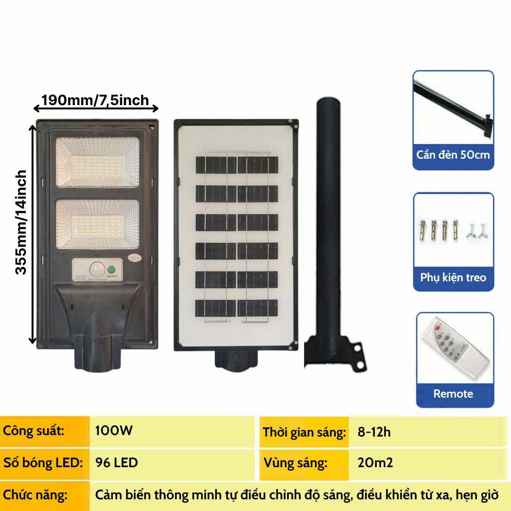 Đèn liền thể năng lượng mặt trời 100w vỏ nhựa ABS